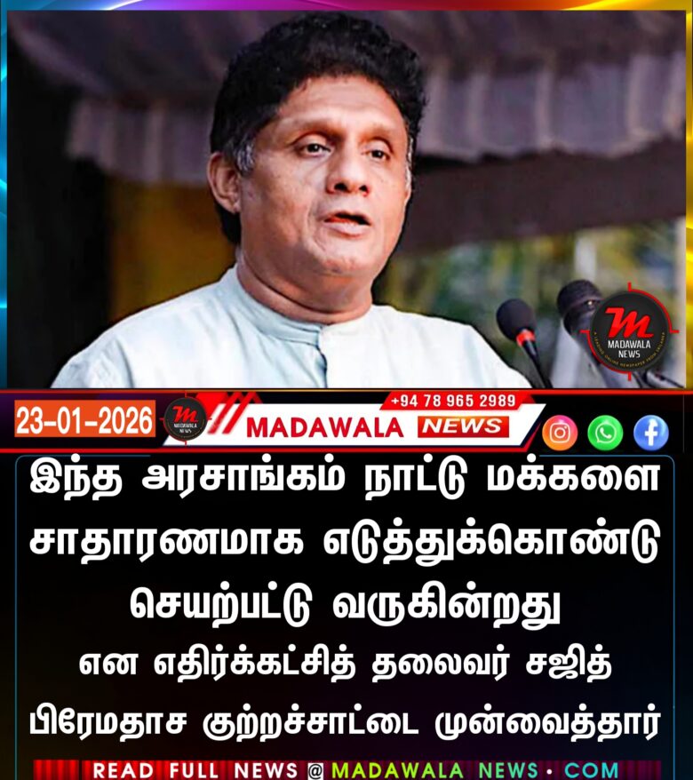 இந்த அரசாங்கம் நாட்டு மக்களை சாதாரணமாக எடுத்துக்கொண்டு செயற்பட்டு வருகின்றது என்று எதிர்க்கட்சித் தலைவர் சஜித் பிரேமதாச தெரிவித்தார்.
