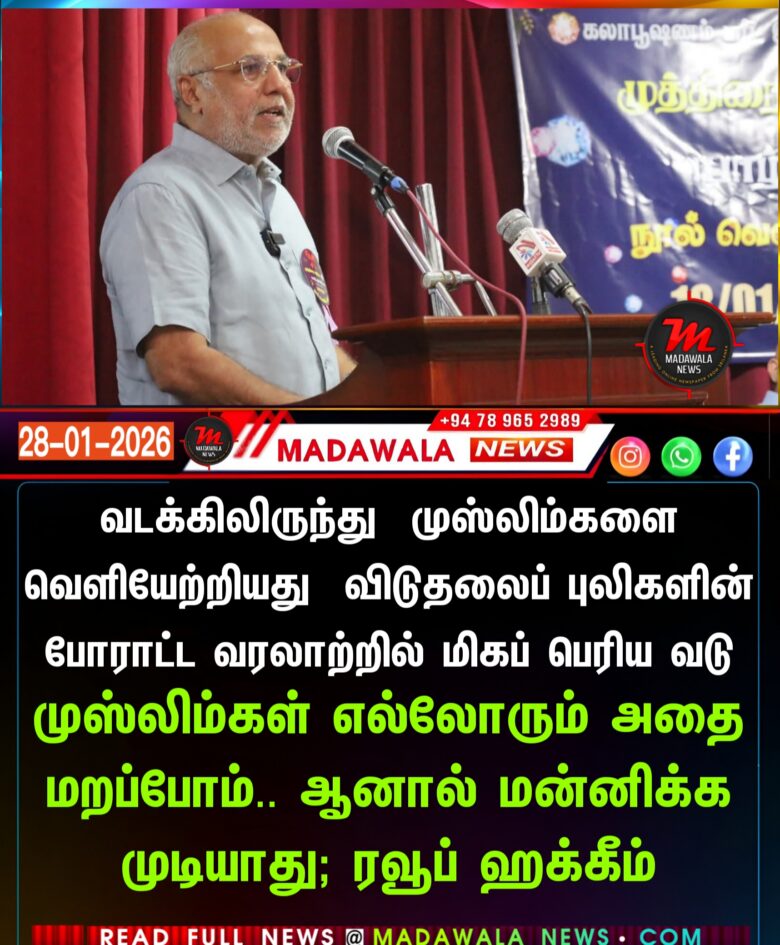 வடக்கிலிருந்து  முஸ்லிம்களை வெளியேற்றியது  விடுதலைப் புலிகளின் போராட்ட வரலாற்றில் மிகப் பெரிய வடு – முஸ்லிம்கள் எல்லோரும் அதை மறப்போம்.. ஆனால் மன்னிக்க முடியாது; ரவூப் ஹக்கீம்