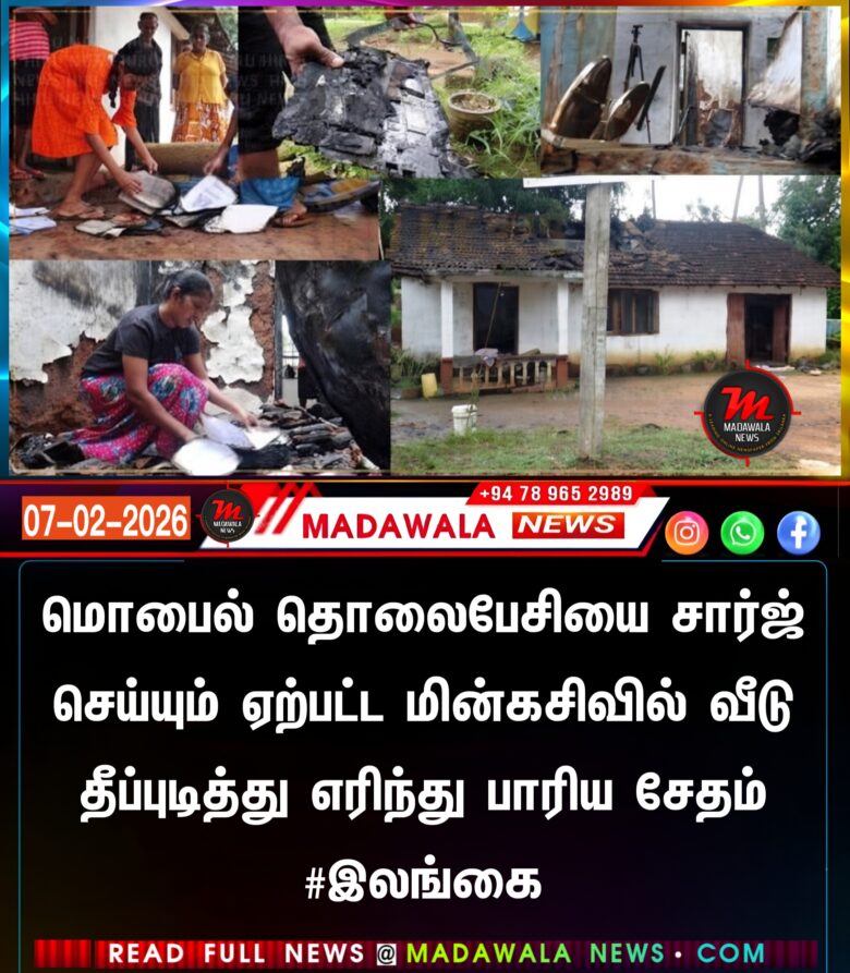 மொபைல் தொலைபேசியை சார்ஜ் செய்யும் ஏற்பட்ட மின்கசிவில் வீடு தீப்புடித்து எரிந்து பாரிய சேதம் #இலங்கை