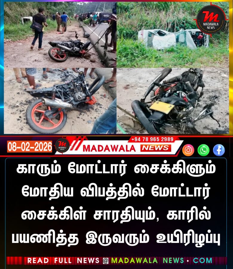 இன்று (8) தல்துவ பகுதியில் அமிதிரிகல பகுதியில் காரும் மோட்டார் சைக்கிளும் மோதிய விபத்தில் மூன்று பேர் உயிரிழந்தனர்.