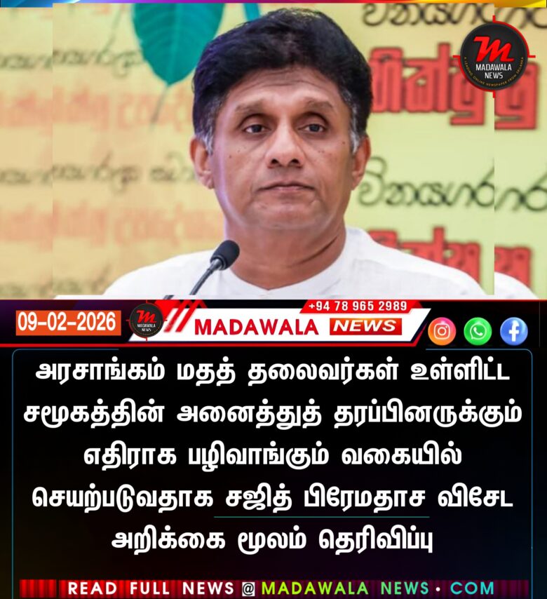 அரசாங்கம் மதத் தலைவர்கள் உள்ளிட்ட சமூகத்தின் அனைத்துத் தரப்பினருக்கும் எதிராக பழிவாங்கும் வகையில் செயற்படுவதாக சஜித் பிரேமதாச விசேட அறிக்கை மூலம் தெரிவிப்பு