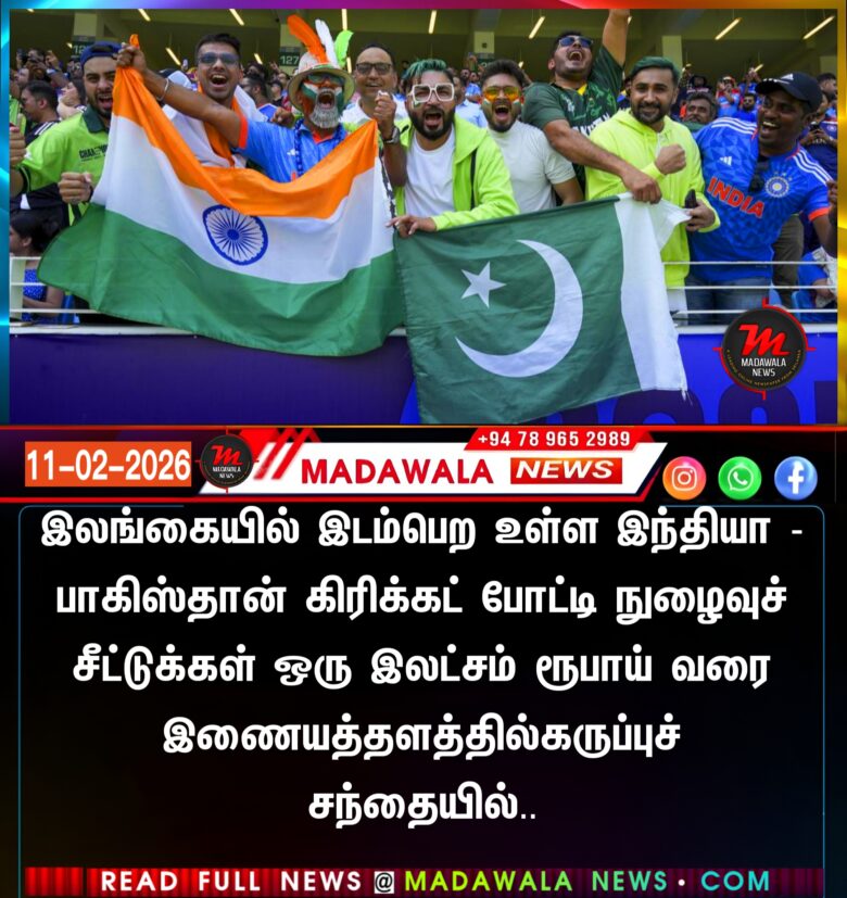 இலங்கையில் இடம்பெற உள்ள இந்தியா – பாகிஸ்தான் கிரிக்கட் போட்டிநுழைவுச் சீட்டுக்கள் ஒரு இலட்சம் ரூபாய் வரை இணையத்தளத்தில்கருப்புச் சந்தையில்..