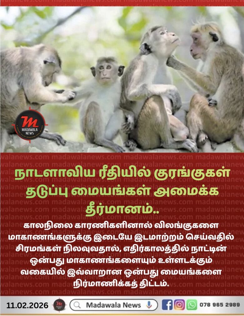 வனவிலங்குகளால் ஏற்படும் பாதிப்புகளைக் கட்டுப்படுத்தும் புதிய நடவடிக்கையாக, தீவின் முதலாவது குரங்குகள் தடுப்பு மையம் மாத்தளை மாவட்டத்தில் களுகங்கா நீர்த்தேக்கத்திற்கு அருகாமையில் நிர்மாணிக்கப்படவுள்ளதாக வனஜீவராசிகள் பாதுகாப்பு திணைக்களம் தீர்மானித்துள்ளது.