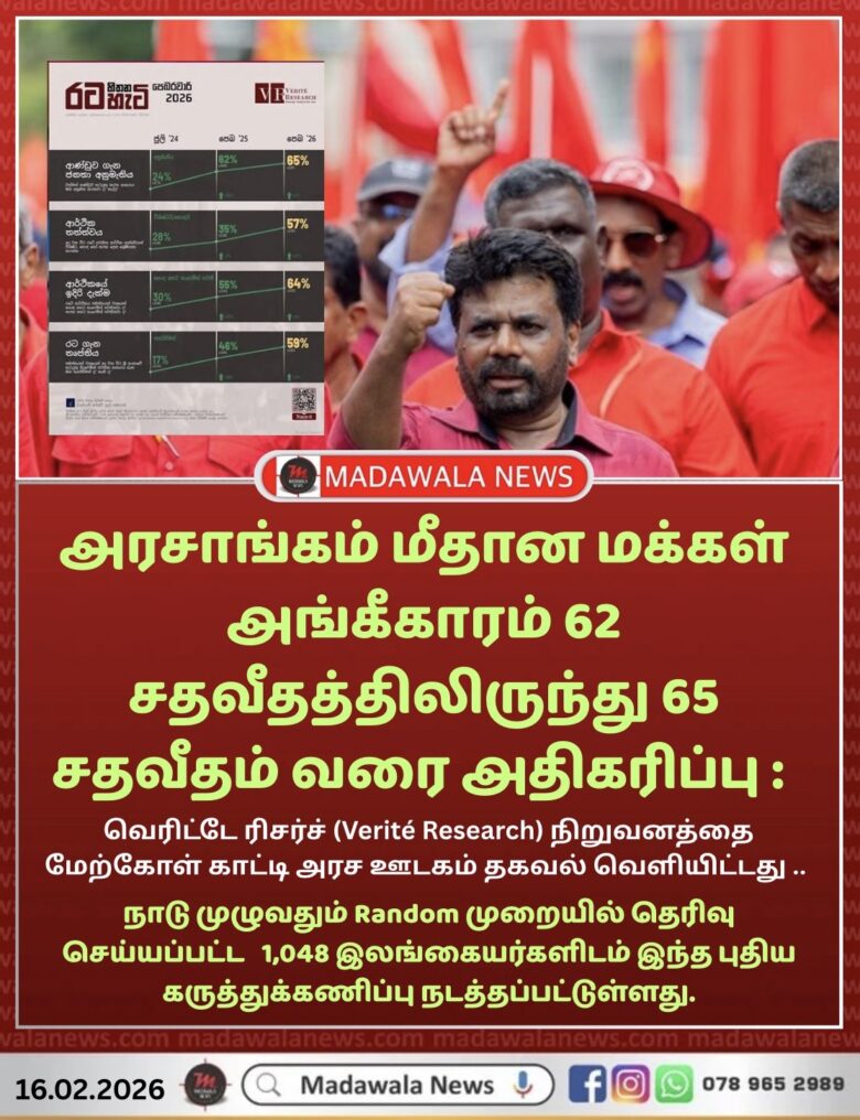 அரசாங்கம் மீதான மக்கள் அங்கீகாரம் 62 சதவீதத்திலிருந்து 65 சதவீதம் வரை அதிகரிப்பு ..!