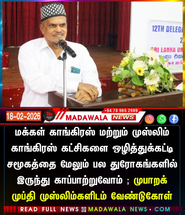 ம‌க்க‌ள் காங்கிர‌ஸ் மற்றும் முஸ்லிம் காங்கிர‌ஸ் க‌ட்சிக‌ளை ஒழித்துக்கட்டி சமூகத்தை மேலும் பல துரோகங்களில் இருந்து காப்பாற்றுவோம் ; முபாற‌க் முப்தி முஸ்லிம்களிடம் வேண்டுகோள்