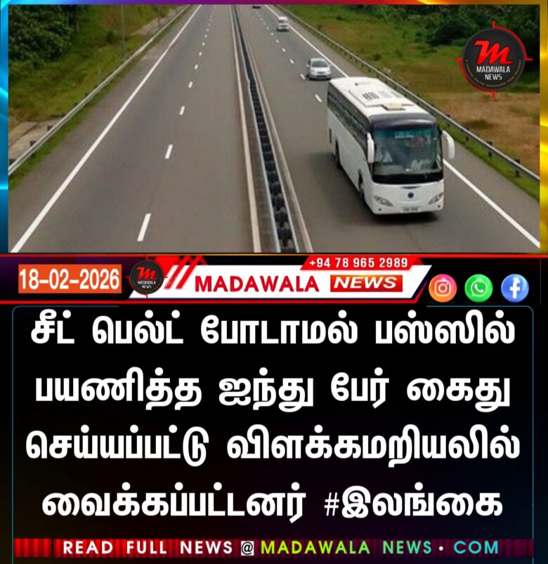 சீட் பெல்ட் போடாமல் பஸ்ஸில் பயணித்த ஐந்து பேர் கைது செய்யப்பட்டு விளக்கமறியலில் வைக்கப்பட்டனர் #இலங்கை