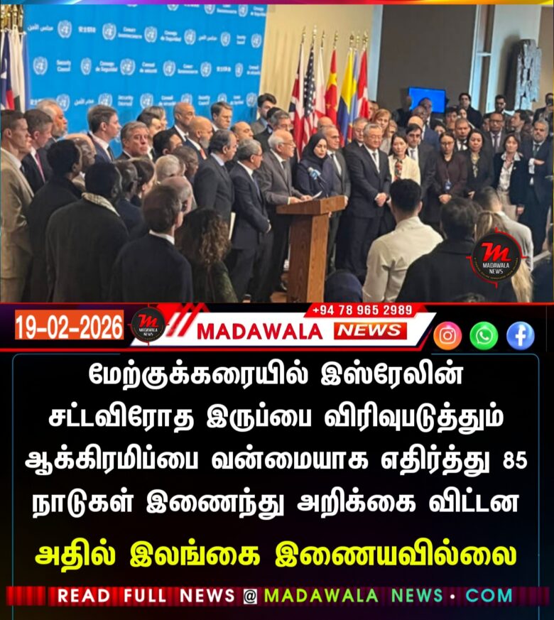 மேற்குக்கரையில் இஸ்ரேலின் சட்டவிரோத இருப்பை விரிவுபடுத்தும் ஆக்கிரமிப்பை வன்மையாக எதிர்த்து 85 நாடுகள் இணைந்து அறிக்கை விட்டன – அதில் இலங்கை இணையவில்லை