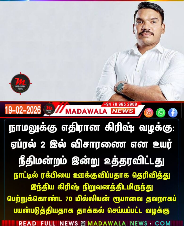 நாமலுக்கு எதிரான கிரிஷ் வழக்கு: ஏப்ரல் 2 இல் விசாரணை என உயர் நீதிமன்றம் இன்று உத்தரவிட்டது