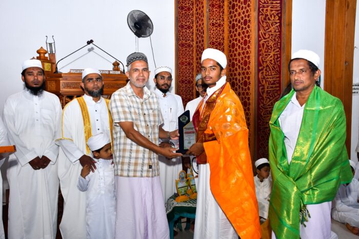 மருதமுனை மஸ்ஜிதுல் கபீர் ஜும்ஆ பெரிய பள்ளிவாசலில் இயங்கி வரும் அந்நூர் கல்வி நிறுவகத்தில் அல் – குர்ஆன் முழுவதையும் மனனம் செய்த ஹாபிழ்கள் மற்றும் 15,10,5 ஜுஸ்உகள் (அல்குர்ஆனின் சில பகுதிகள்) மனனம் செய்தவர்களையும் பாராட்டி கௌரவிக்கும் நிகழ்வு அந்நூர் கல்வி நிலையத்தின் உப தலைவரும் பல் வைத்திய நிபுணருமான டொக்டர் எம்.ஐ.எம். ஹபீல்(Bds) அவர்களின் தலைமையில் இன்று(20) மஸ்ஜிதுல் கபீர் ஜும்ஆ பெரிய பள்ளிவாசலில் ஜும்ஆ தொழுகையின் பின்னர் சிறப்பாக நடைபெற்றது.