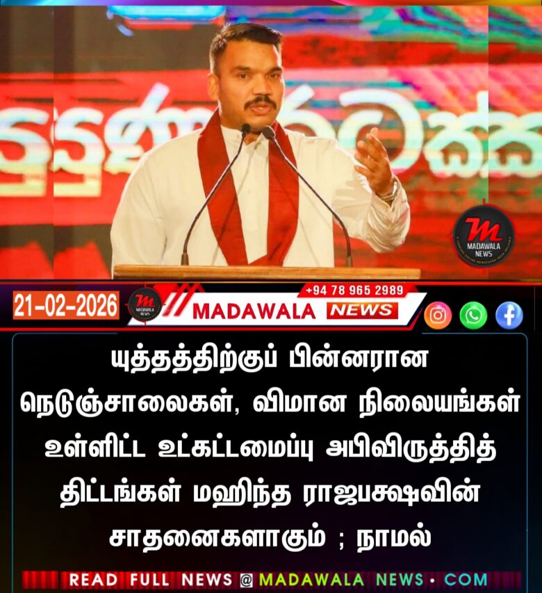 யுத்தத்திற்குப் பின்னரான நெடுஞ்சாலைகள், விமான நிலையங்கள் உள்ளிட்ட உட்கட்டமைப்பு அபிவிருத்தித் திட்டங்கள் மஹிந்த ராஜபக்ஷவின் சாதனைகளாகும் ; நாமல்