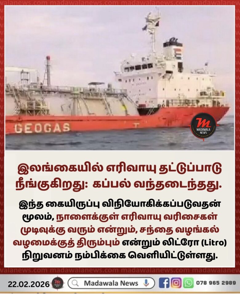• நாளை முதல் நிவர்த்தி: புதிய கையிருப்பு விநியோகம் துரிதப்படுத்தப்பட்டுள்ளதால், நாளை (பெப்ரவரி 23) முதல் நாடு முழுவதும் உள்ள மக்கள் எவ்வித சிரமமுமின்றி எரிவாயுவை கொள்வனவு செய்ய முடியும்.