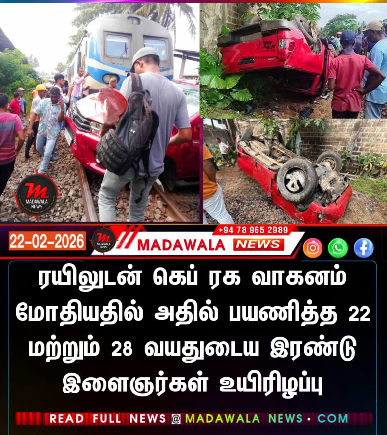 ரயிலுடன் கெப் ரக வாகனம் மோதியதில் அதில் பயணித்த 22 மற்றும் 28 வயதுடைய இரண்டு இளைஞர்கள் உயிரிழப்பு