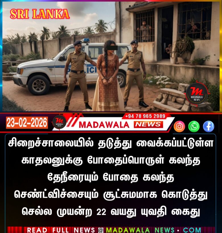 சிறைச்சாலையில் தடுத்து வைக்கப்பட்டுள்ள காதலனுக்கு போதைப்பொருள் கலந்த தேநீரையும் போதை கலந்த செண்ட்விச்சையும் சூட்சுமமாக கொடுத்து செல்ல முயன்ற 22 வயது யுவதி கைது