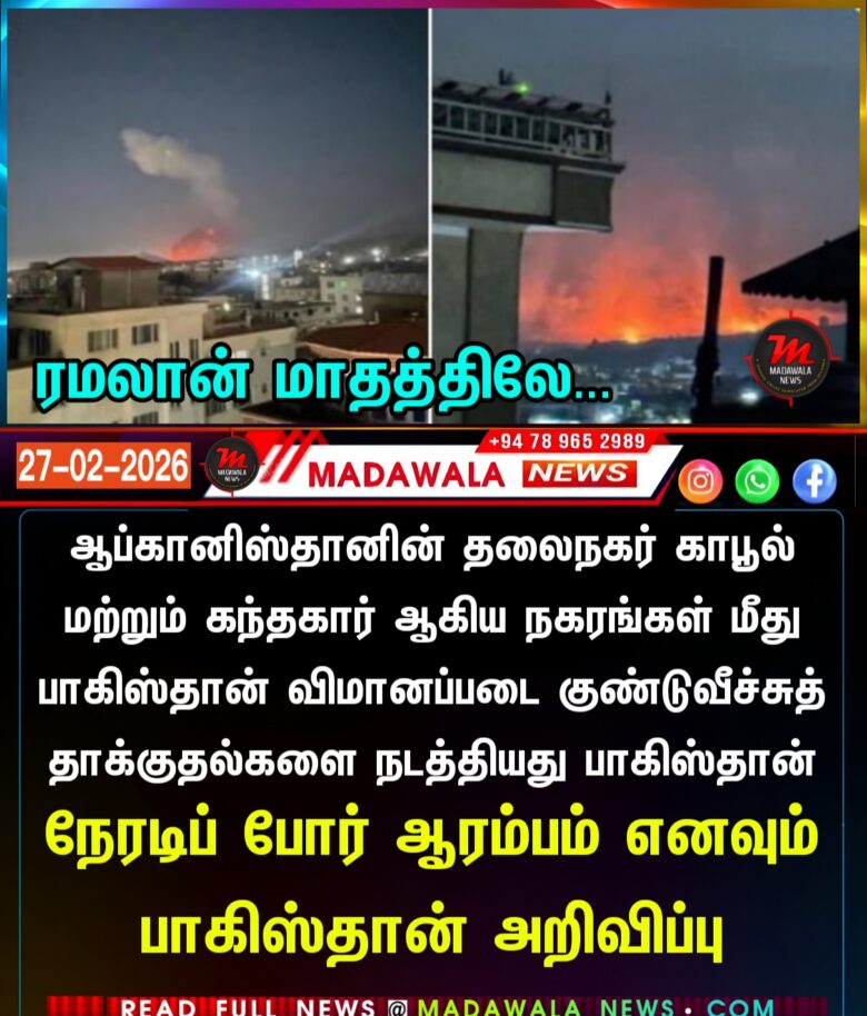 ஆப்கானிஸ்தானின் தலைநகர் காபூல் மற்றும் கந்தகார் ஆகிய நகரங்கள் மீது பாகிஸ்தான் விமானப்படை குண்டுவீச்சுத் தாக்குதல்களை நடத்தியது பாகிஸ்தான் – நேரடிப் போர் ஆரம்பம் எனவும் பாகிஸ்தான் அறிவிப்பு