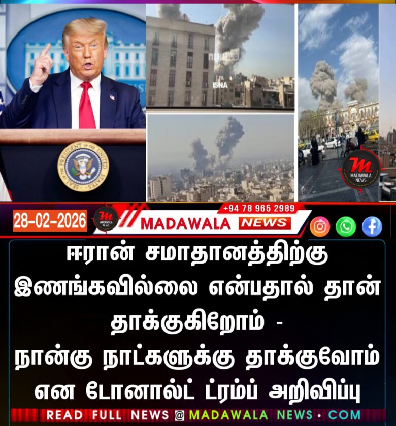 ஈரான் சமாதானத்திற்கு இணங்கவில்லை என்பதால் தான் தாக்குகிறோம் – நான்கு நாட்களுக்கு தாக்குவோம் என டோனால்ட் ட்ரம்ப் அறிவிப்பு