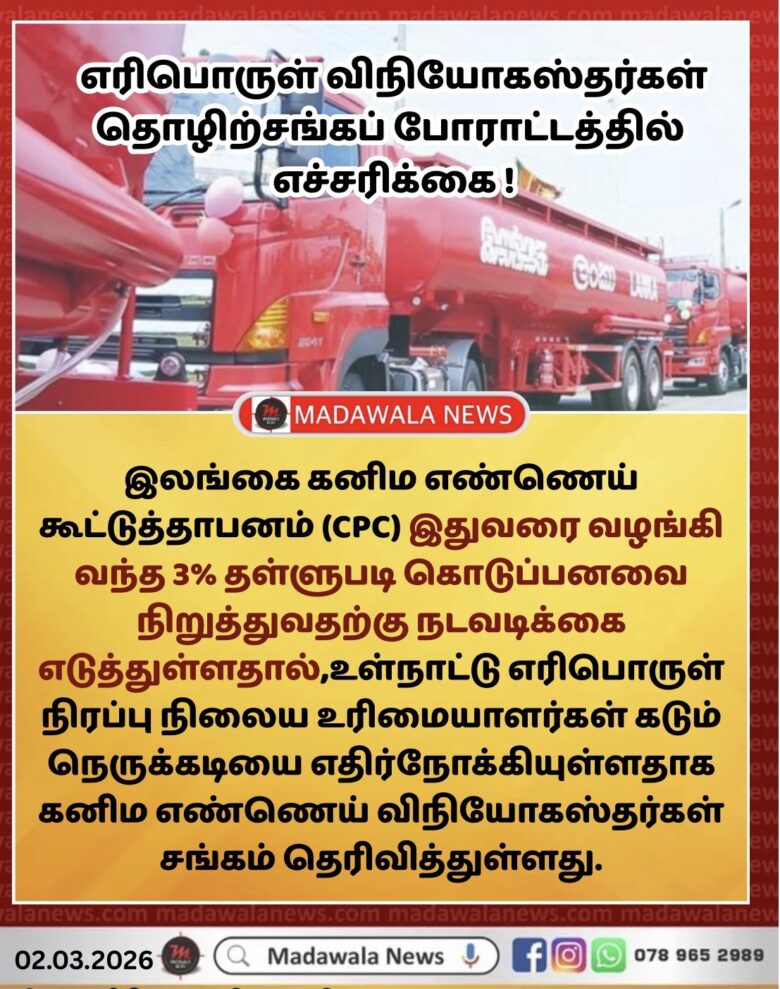 • இந்த நடவடிக்கை காரணமாக, கூட்டுத்தாபனத்தின் கீழ் உள்ள எரிபொருள் நிரப்பு நிலையங்களை நிதி ரீதியாக முன்னெடுத்துச் செல்வது சாத்தியமற்ற நிலையை அடைந்துள்ளது.