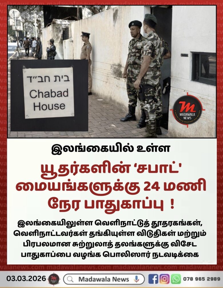 இலங்கையில் உள்ள யூதர்களின் ‘சபாட்’ மையங்களுக்கு 24 மணி நேர பாதுகாப்பை வழங்க தீர்மானம் !
