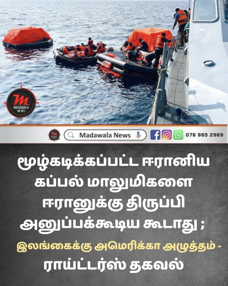 மூழ்கடிக்கப்பட்ட ஈரானிய கப்பல் மாலுமிகளை ஈரானுக்கு திருப்பி அனுப்பக் கூடாது ;  இலங்கைக்கு அமெரிக்கா அழுத்தம் – ராய்ட்டர்ஸ் தகவல்