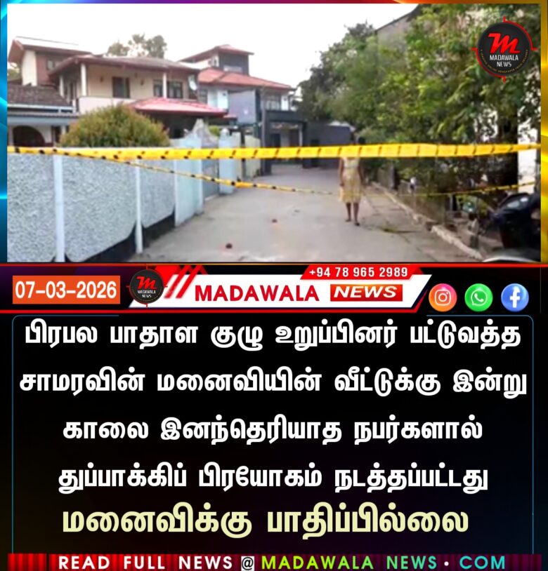 பிரபல பாதாள உறுப்பினர் பட்டுவத்த சாமரவின் மனைவியின் வீட்டுக்கு இன்று காலை இனந்தெரியாத நபர்களால் துப்பாக்கிப் பிரயோகம் நடத்தப்பட்டது – மனைவிக்கு பாதிப்பில்லை