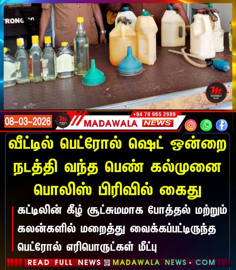 வீட்டில் பெட்ரோல் ஷெட் ஒன்றை நடத்தி வந்த பெண் கல்முனை பொலிஸ் பிரிவில் கைது