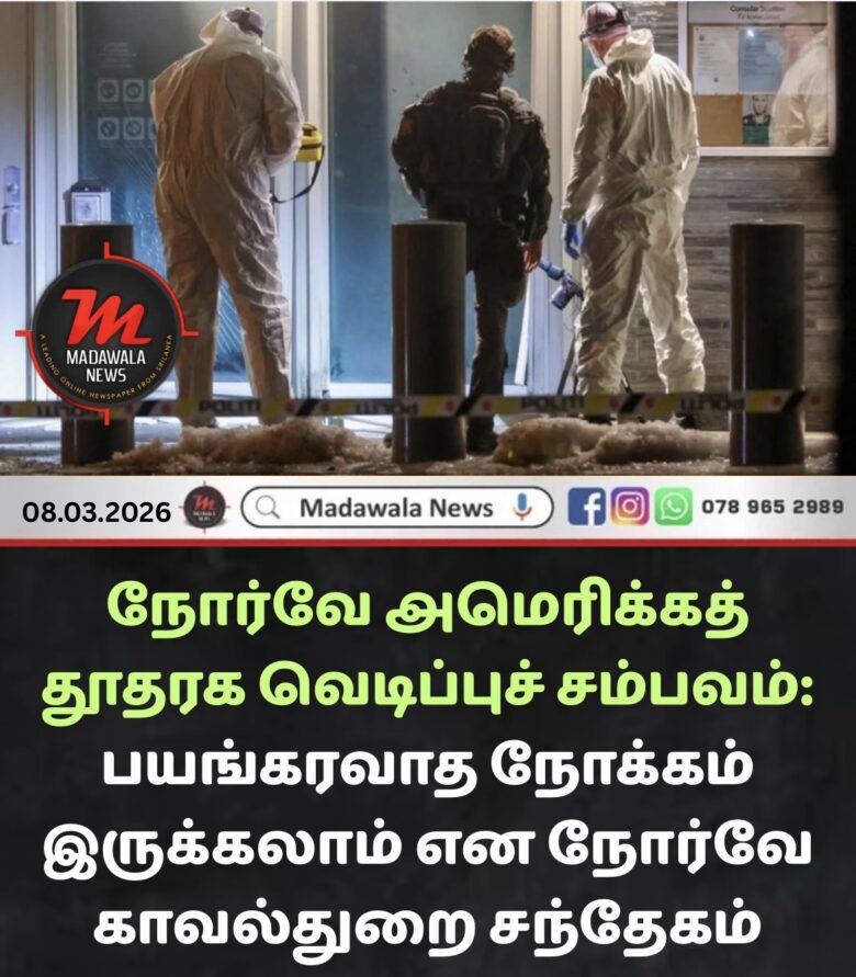 அமெரிக்கத் தூதரக வெடிப்புச் சம்பவம்: பயங்கரவாத நோக்கம் இருக்கலாம் என நார்வே காவல்துறை சந்தேகம்