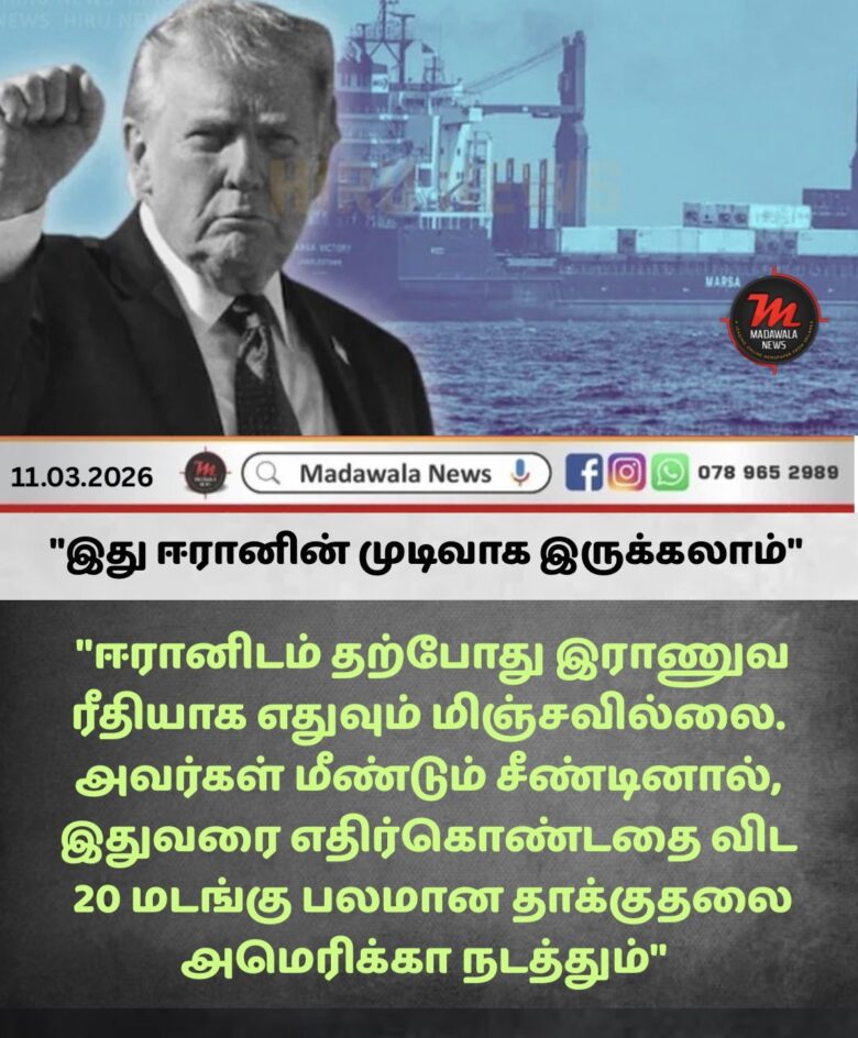 • “ஹோர்முஸ் நீரிணையில் எண்ணெய் ஓட்டத்தை நிறுத்த ஈரான் முயன்றால், இதுவரை அவர்கள் எதிர்கொண்டதை விட 20 மடங்கு பலமான தாக்குதலை அமெரிக்கா நடத்தும்.”
