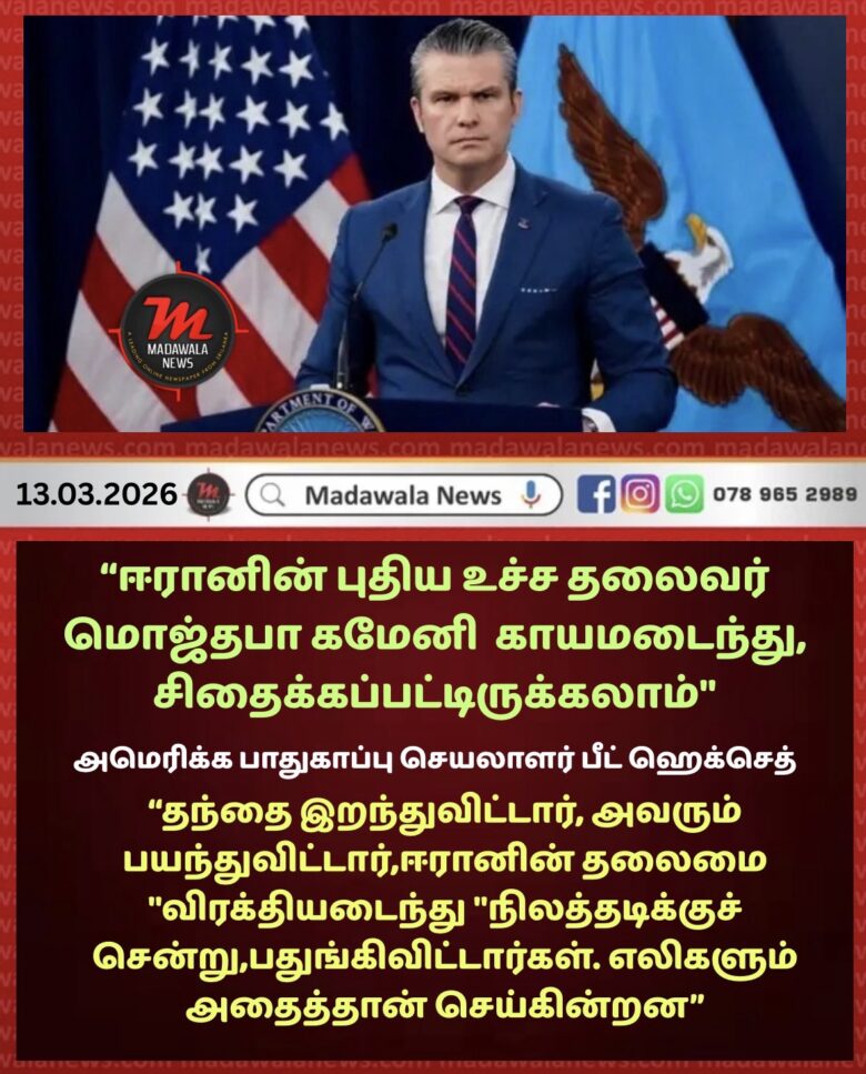 ஈரானுக்கு எதிரான தங்கள் இராணுவ நடவடிக்கையை அமெரிக்காவும் இஸ்ரேலும் தீவிரப்படுத்தியுள்ள நிலையில், ஈரானின் புதிய உச்ச தலைவர் மொஜ்தபா கமேனி “காயமடைந்து, சிதைக்கப்பட்டிருக்கலாம்” என்று அமெரிக்க பாதுகாப்பு செயலாளர் பீட் ஹெக்செத்
