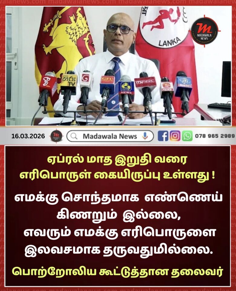 ஏப்ரல் மாத இறுதி வரை தம்மிடம் எரிபொருள் கையிருப்பு உள்ளது என பொற்றோலிய கூட்டுத்தான தலைவர் டி ஜே ராஜகருனா குறிப்பிட்டார்.