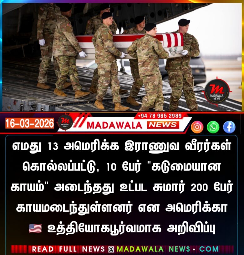 எமது 13 அமெரிக்க இராணுவ வீரர்கள் கொல்லப்பட்டு, 10 பேர் “கடுமையான காயம்” அடைந்தது உட்பட சுமார் 200 பேர் காயமடைந்துள்ளனர் என அமெரிக்கா உத்தியோகபூர்வமாக அறிவிப்பு
