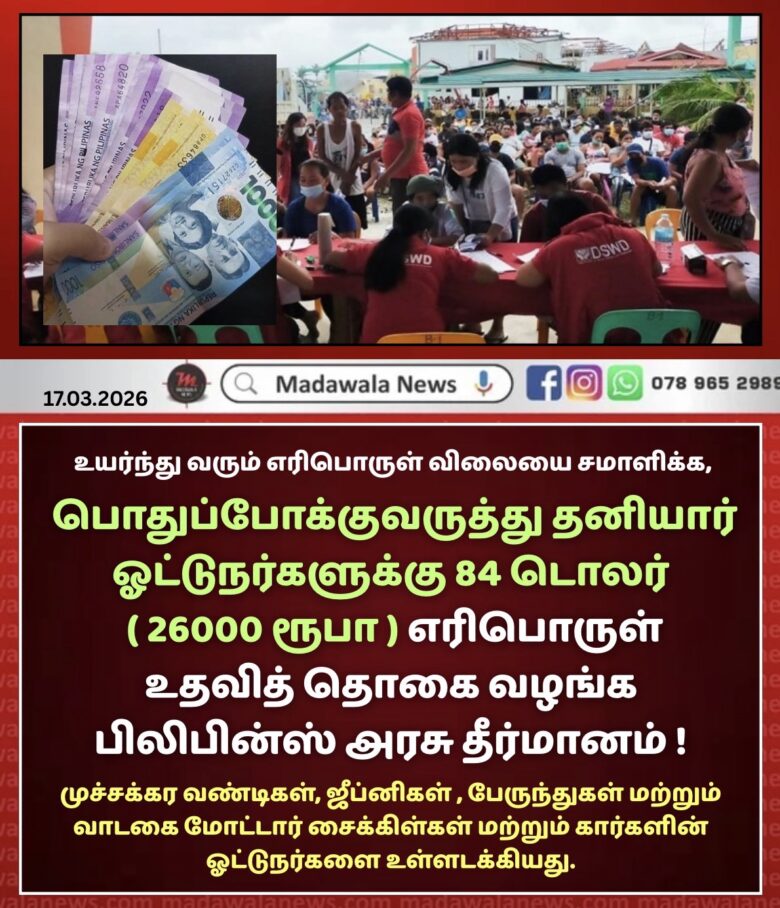 பிலிபின்ஸில் தனியார் ஓட்டுநர்களுக்கு 84 டொலர் ( 26000 ரூபா ) எரிபொருள் உதவித் தொகை வழங்க அரசு தீர்மானம் !