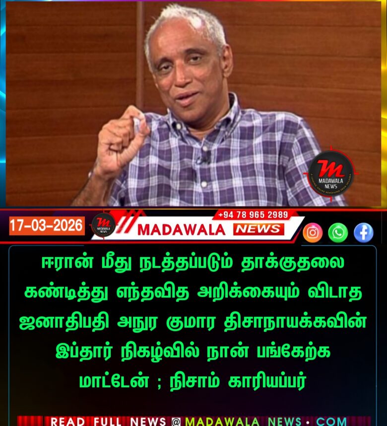 ஈரான் மீது நடத்தப்படும் தாக்குதலை கண்டித்து எந்தவித அறிக்கையும் விடாத ஜனாதிபதி அநுர குமார திசாநாயக்கவின் இப்தார் நிகழ்வில் நான் பங்கேற்க மாட்டேன் ; நிசாம் காரியப்பர்