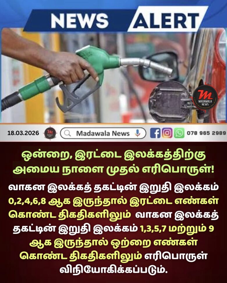 ஒன்றை, இரட்டை இலக்கத்திற்கு அமைய நாளை முதல் எரிபொருள்!