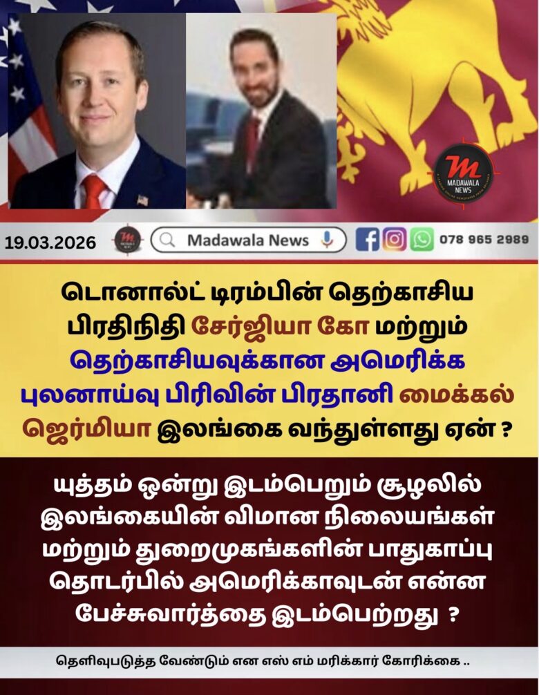 டொனால்ட் டிரம்பின் தெற்காசிய பிரதிநிதியும் இந்தியவுக்கான அமெரிக்க தூதுவருமான சேர்ஜியா கோ மற்றும் வெள்ளை மாளிகை பாதுகாப்பு கவுன்சிலின் உறுப்பினரும் தெற்காசியவுக்கான அமெரிக்க புலனாய்வு பிரிவுக்கு பொறுப்பாக இருக்கும் மைக்கல் ஜெர்மியா ஆகியோர் இலங்கைக்கு வந்துள்ளது ஏன் பாராளுமன்ற உறுப்பினர் எஸ் எம் மரிக்கார் பாராளுமன்றில் கேள்வி எழுப்பினார்.