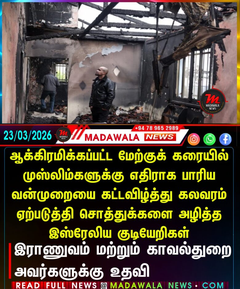 ஆக்கிரமிக்கப்பட்ட மேற்குக் கரையில் முஸ்லிம்களுக்கு எதிராக பாரிய வன்முறையை கட்டவிழ்த்து கலவரம் ஏற்படுத்தி சொத்துக்களை அழித்த இஸ்ரேலிய குடியேறிகள் – இராணுவம் மற்றும் காவல்துறை அவர்களுக்கு உதவி