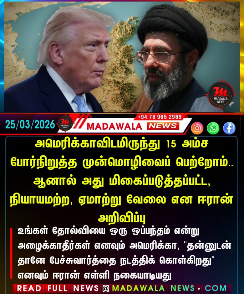 அமெரிக்காவிடமிருந்து 15 அம்ச போர்நிறுத்த முன்மொழிவைப் பெற்றோம்.. ஆனால் அது மிகைப்படுத்தப்பட்ட, நியாயமற்ற, ஏமாற்று வேலை என ஈரான் அறிவிப்பு