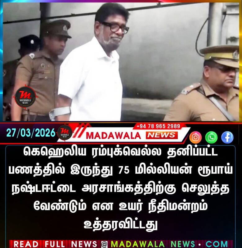 கெஹெலிய ரம்புக்வெல்ல தனிப்பட்ட பணத்தில் இருந்து 75 மில்லியன் ரூபாய் நஷ்டஈட்டை அரசாங்கத்திற்கு செலுத்த வேண்டும் என உயர் நீதிமன்றம் உத்தரவிட்டது
