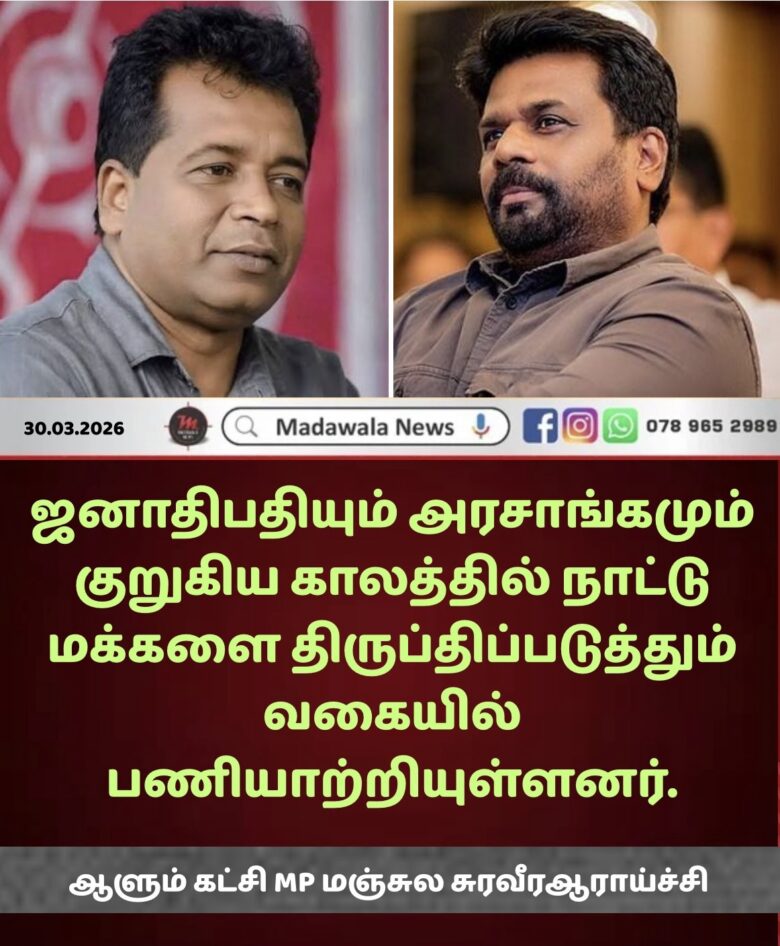 ஜனாதிபதியும் அரசாங்கமும் குறுகிய காலத்தில் நாட்டு மக்களை திருப்திப்படுத்தும் வகையில் பணியாற்றியுள்ளனர் – பாராளுமன்ற உறுப்பினர் மஞ்சுல சுரவீரஆராய்ச்சி