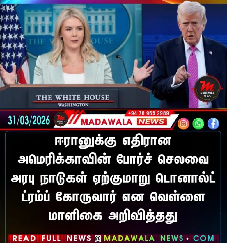 ஈரானுக்கு எதிரான அமெரிக்காவின் போர்ச் செலவை அரபு நாடுகள் ஏற்குமாறு டொனால்ட் ட்ரம்ப் கோருவார் என வெள்ளை மாளிகை அறிவித்தது