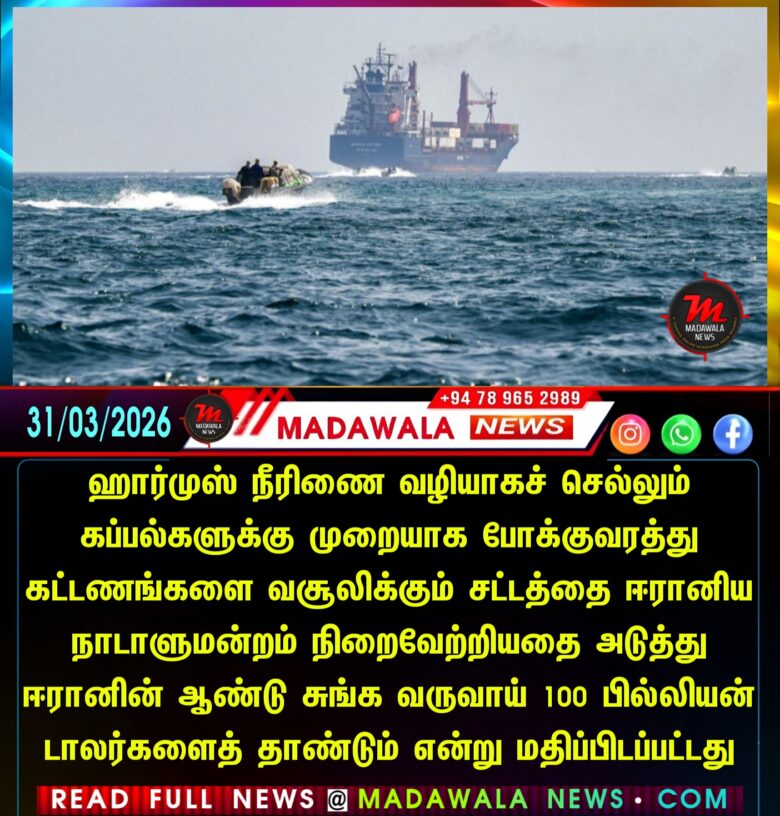 ஈரானின் புரட்சிகர காவல்படை சார்புடைய தஸ்னிம் (Tasnim) மற்றும் ஃபார்ஸ் (Fars) செய்தி முகமைகளின்படி, ஹார்முஸ் நீர்சந்தி வழியாகச் செல்லும் வணிகக் கப்பல்களுக்கு முறையாக போக்குவரத்து கட்டணங்களை விதிப்பதற்கான சட்டத்தை ஈரானிய நாடாளுமன்றம் நிறைவேற்றியுள்ளது.