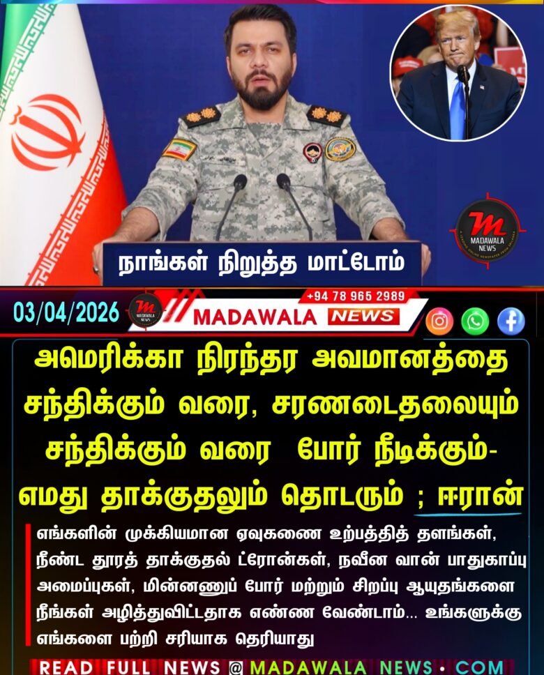 நாங்கள் நிறுத்த மாட்டோம் – அமெரிக்கா நிரந்தர அவமானத்தை சந்திக்கும் வரை, சரணடைதலையும் சந்திக்கும் வரை போர் நீடிக்கும்- எமது தாக்குதலும் தொடரும் ; ஈரான் அறிவிப்பு