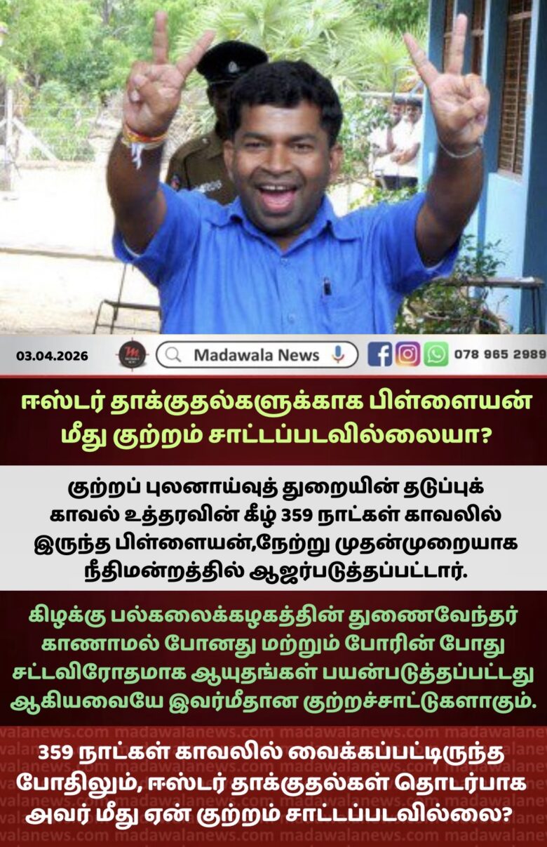 ஈஸ்டர் தாக்குதல்களுக்காக பிள்ளையன் மீது குற்றம் சாட்டப்படவில்லையா?