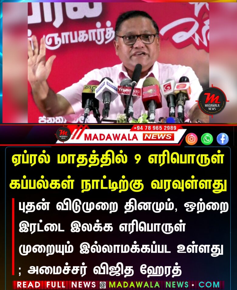 ஏப்ரல் மாதத்தில் 9 எரிபொருள் கப்பல்கள் நாட்டிற்கு வரவுள்ளது – புதன் விடுமுறை தினமும், ஒற்றை இரட்டை இலக்க எரிபொருள் முறையும் இல்லாமக்கப்பட உள்ளது ; அமைச்சர் விஜித ஹேரத்