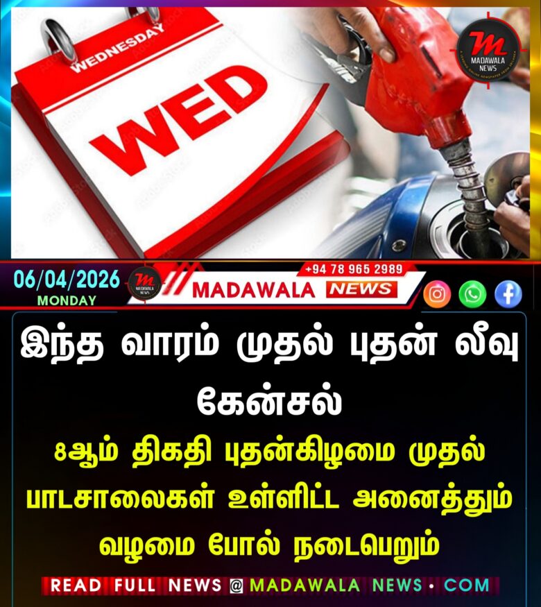 இந்த வாரம் முதல் புதன் லீவு கேன்சல் – 8ஆம் திகதி புதன்கிழமை முதல் பாடசாலைகள் உள்ளிட்ட அனைத்தும் வழமை போல் நடைபெறும்