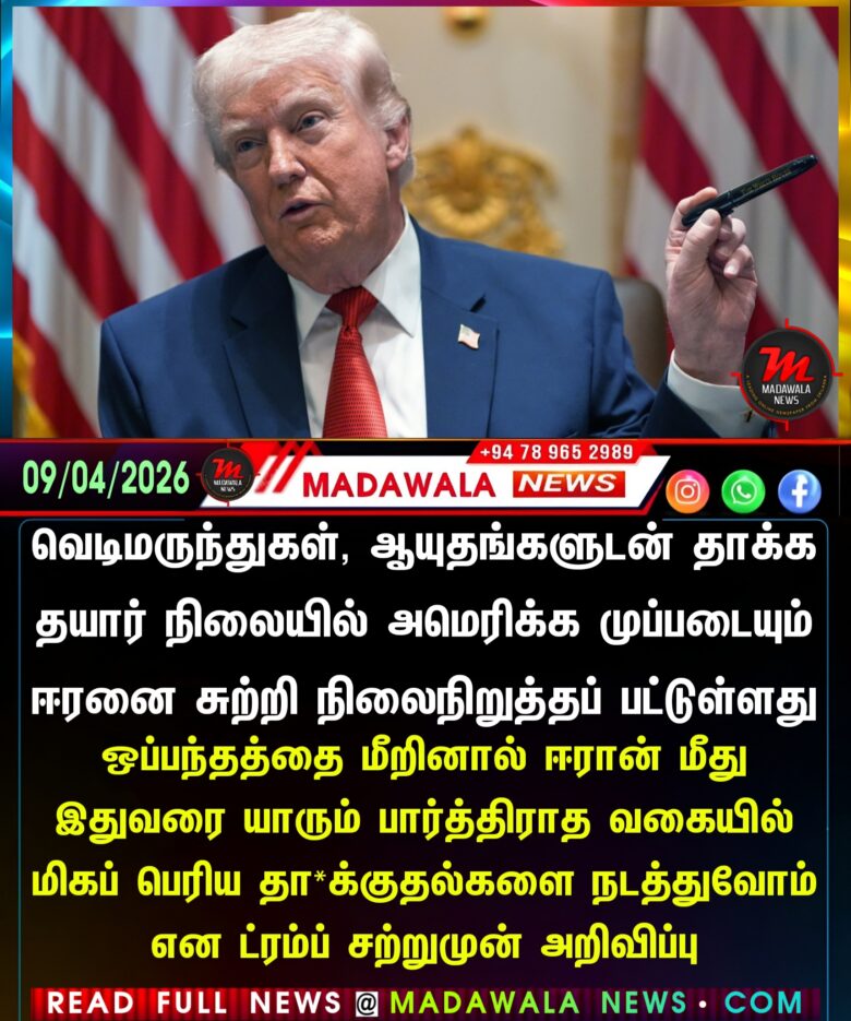 வெடிமருந்துகள், ஆயுதங்களுடன் தாக்க தயார் நிலையில் அமெரிக்க முப்படையும் ஈரனை சுற்றி நிலைநிறுத்தப் பட்டுள்ளது – ஒப்பந்தத்தை மீறினால் ஈரான் மீது இதுவரை யாரும் பார்த்திராத வகையில் மிகப் பெரிய தா*க்குதல்களை நடத்துவோம் என ட்ரம்ப் சற்றுமுன் அறிவிப்பு