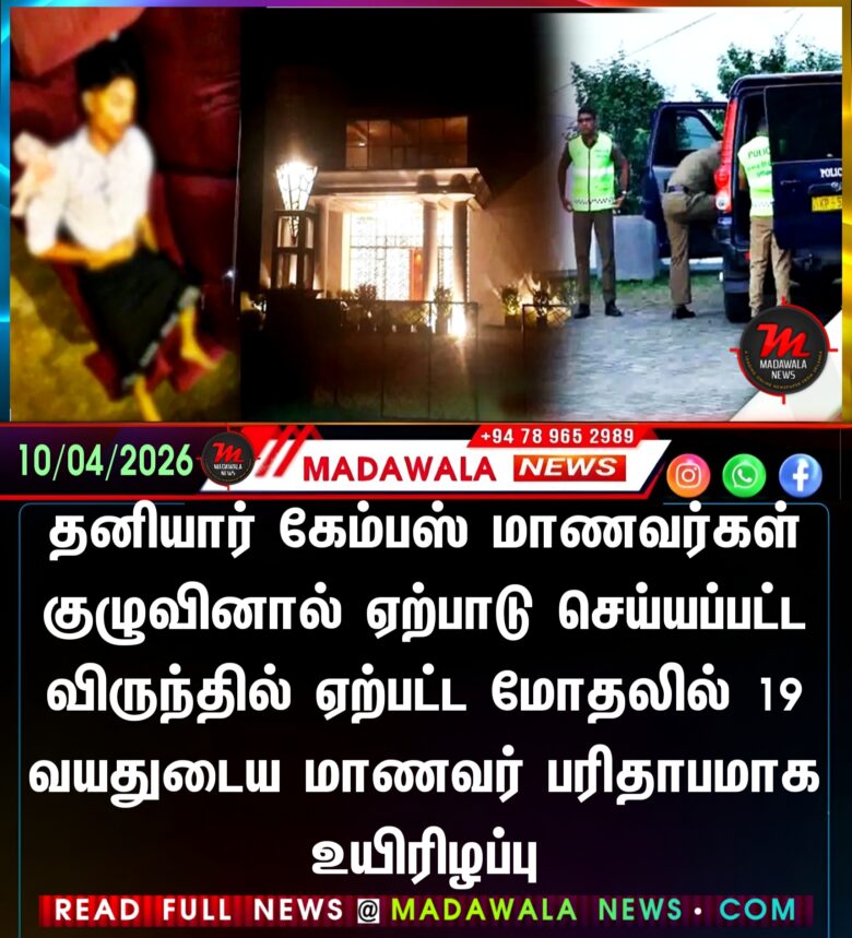 தனியார் கேம்பஸ் மாணவர்கள் குழுவினால் ஏற்பாடு செய்யப்பட்ட விருந்தில் ஏற்பட்ட மோதலில் 19 வயதுடைய மாணவர் பரிதாபமாக உயிரிழப்பு