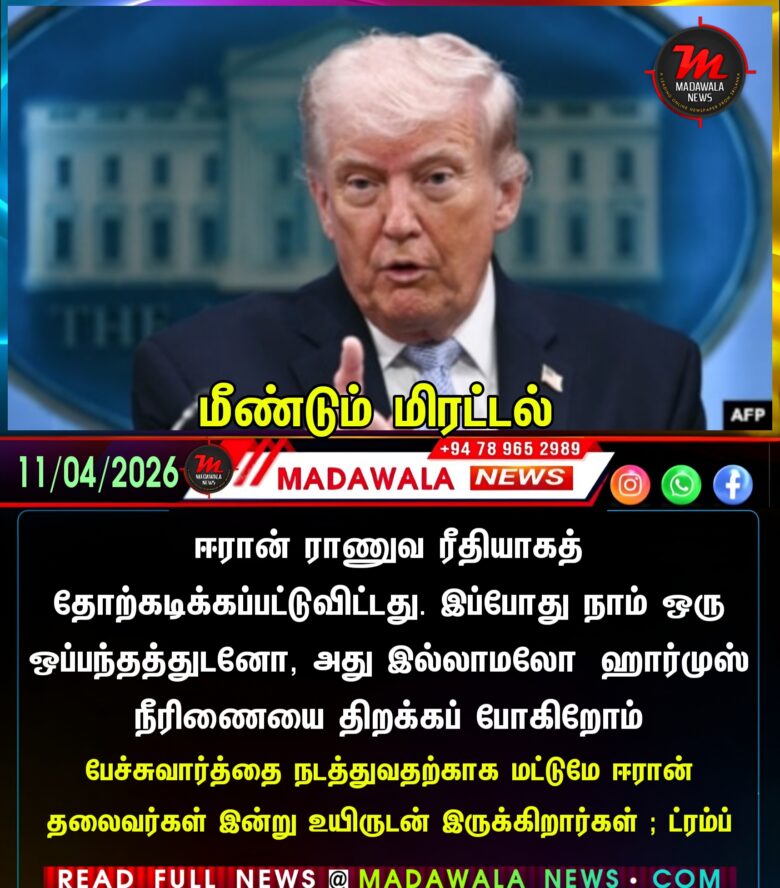 ஈரான் ராணுவ ரீதியாகத் தோற்கடிக்கப்பட்டுவிட்டது. இப்போது நாம் ஒரு ஒப்பந்தத்துடனோ, அது இல்லாமலோ ஹார்முஸ் நீரிணையை திறக்கப் போகிறோம் – பேச்சுவார்த்தை நடத்துவதற்காக மட்டுமே ஈரான் தலைவர்கள் இன்று உயிருடன் இருக்கிறார்கள் ; ட்ரம்ப்