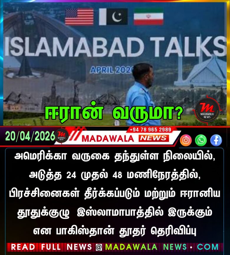 அமெரிக்கா வருகை தந்துள்ள நிலையில், அடுத்த 24 முதல் 48 மணிநேரத்தில், பிரச்சினைகள் தீர்க்கப்படும் மற்றும் ஈரானிய தூதுக்குழு இஸ்லாமாபாத்தில் இருக்கும் என பாகிஸ்தான் தூதர் தெரிவிப்பு
