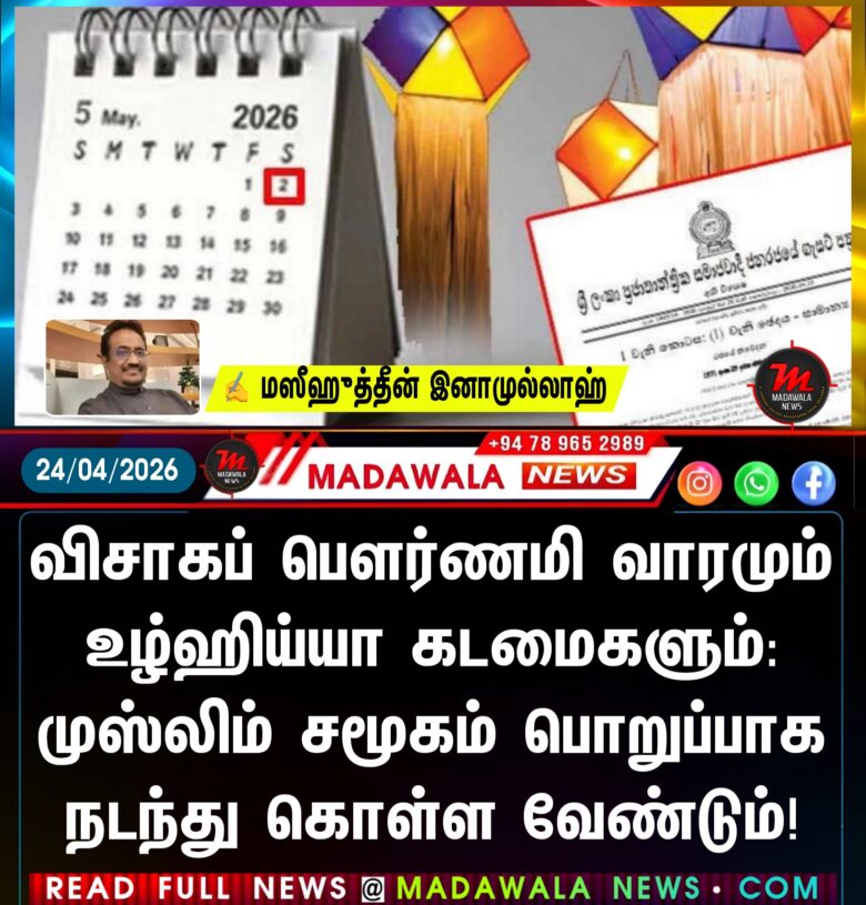 விசாகப் பெளர்ணமி வாரமும் உழ்ஹிய்யா கடமைகளும்: முஸ்லிம் சமூகம் பொறுப்பாக நடந்து கொள்ள வேண்டும்!