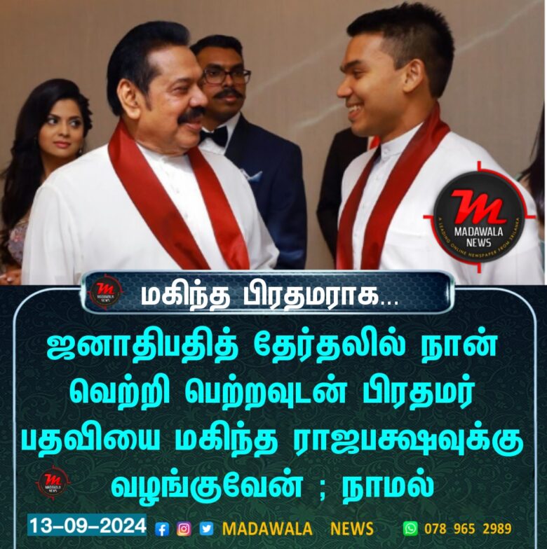 ஜனாதிபதித் தேர்தலில் நான் வெற்றி பெற்றவுடன் பிரதமர் பதவியை மகிந்த ராஜபக்ஷவுக்கு வழங்குவேன் ; நாமல்
