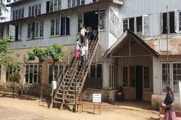 மாடியில் வாக்களிப்பு நிலையம் அமைக்கப்பட்டதால் வாக்காளர்கள் பலரும் அசௌகரியம்.